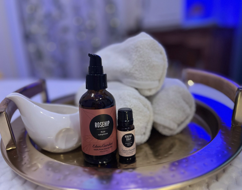 This service adds 15 minutes of focused attention to the neck and scalp for a meditative & botanical healing experience at the end of a 60 or 90 Min Massage. Jojoba and Rosehip oils are gentle and hydrating.They are blended with pure essential oils. warmed, and applied slowly to the hairline and thoroughly massaged into the scalp, neck and shoulders. Warm towels will be wrapped around the head creating a tingling effect to wake up the senses & relax the mind as tension melts away. Choose a Blend to Customize for your needs: